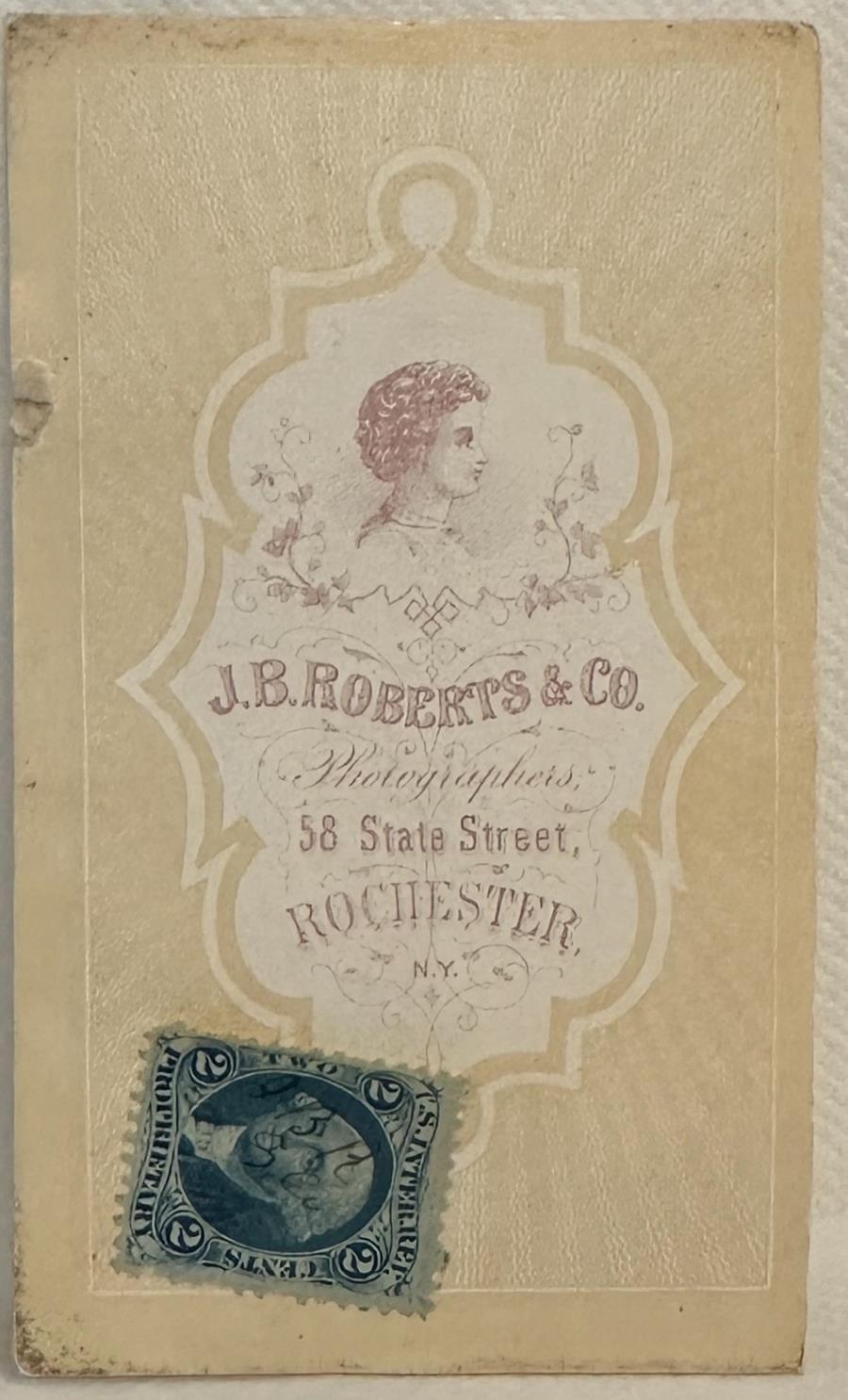 On Roberts’s mounts, the presence of a two‑cent stamp tells us both that the sitter paid no more than twenty‑five cents for the portrait and that the photograph must have been made within that narrow two‑year window, which is why these stamps have become such a useful dating tool for Civil War‑era images.